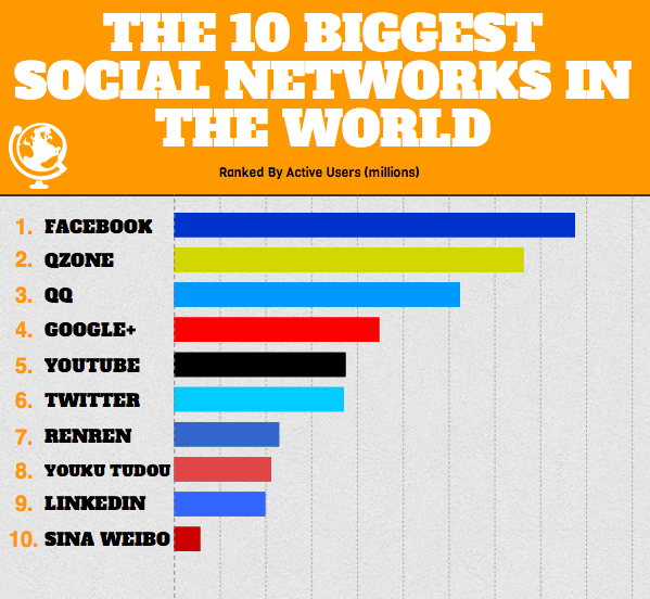 Today I’d like to share the infographic map (below) that shows 10 biggest social networks in the world as of mid 2013. Qzone and QQ occupy 2nd and 3rd places, although, there is a significant overlap between the two in terms if users as both belong to Tencent,...