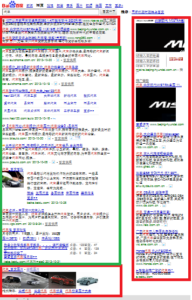 Below is the example of Baidu search results. The PPC results are those in the red frames, at the top, bottom and right. Organic (or free) results are shown in the green frame: